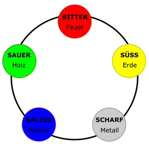 Die Vereinigung der 5 Elemente bringt die 6 Geschmäcker hervor, welche, in der richtigen Dosierung, Glück und Gesundheit bewirken.